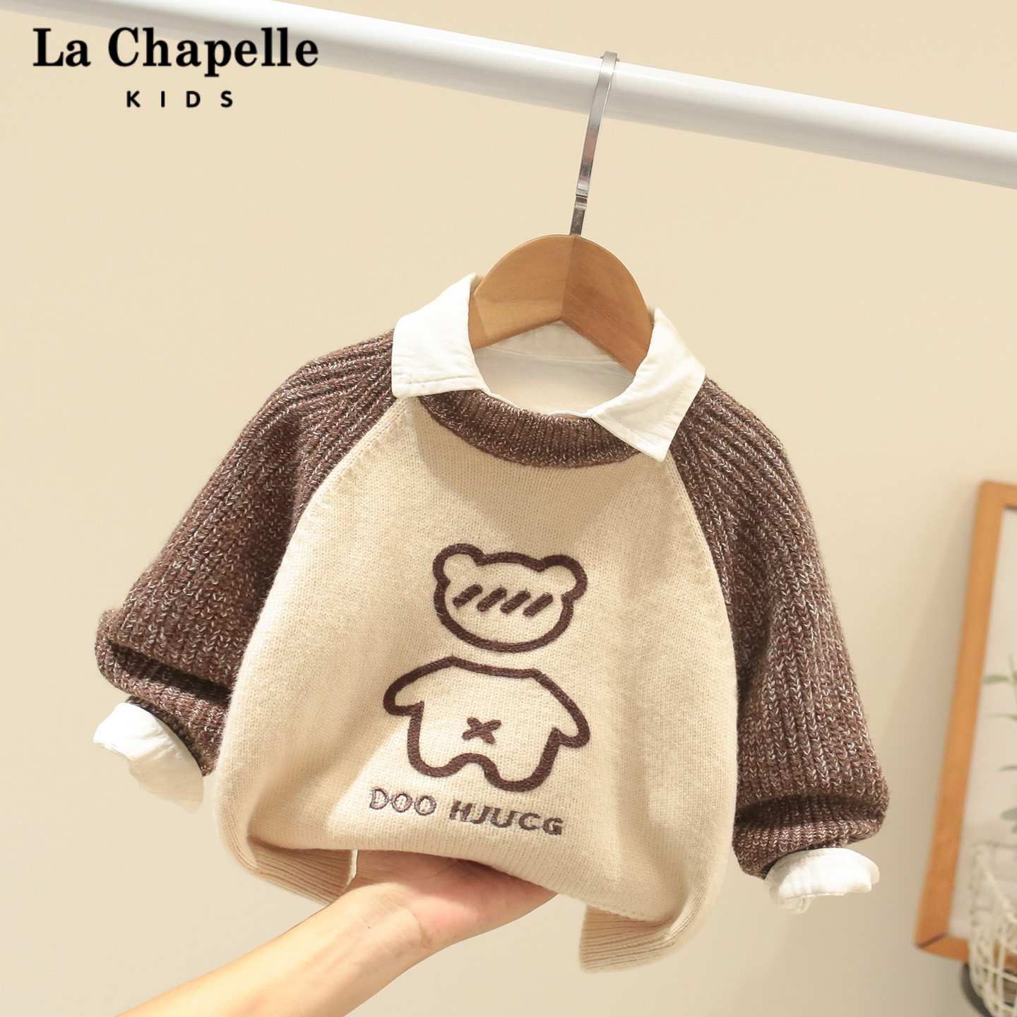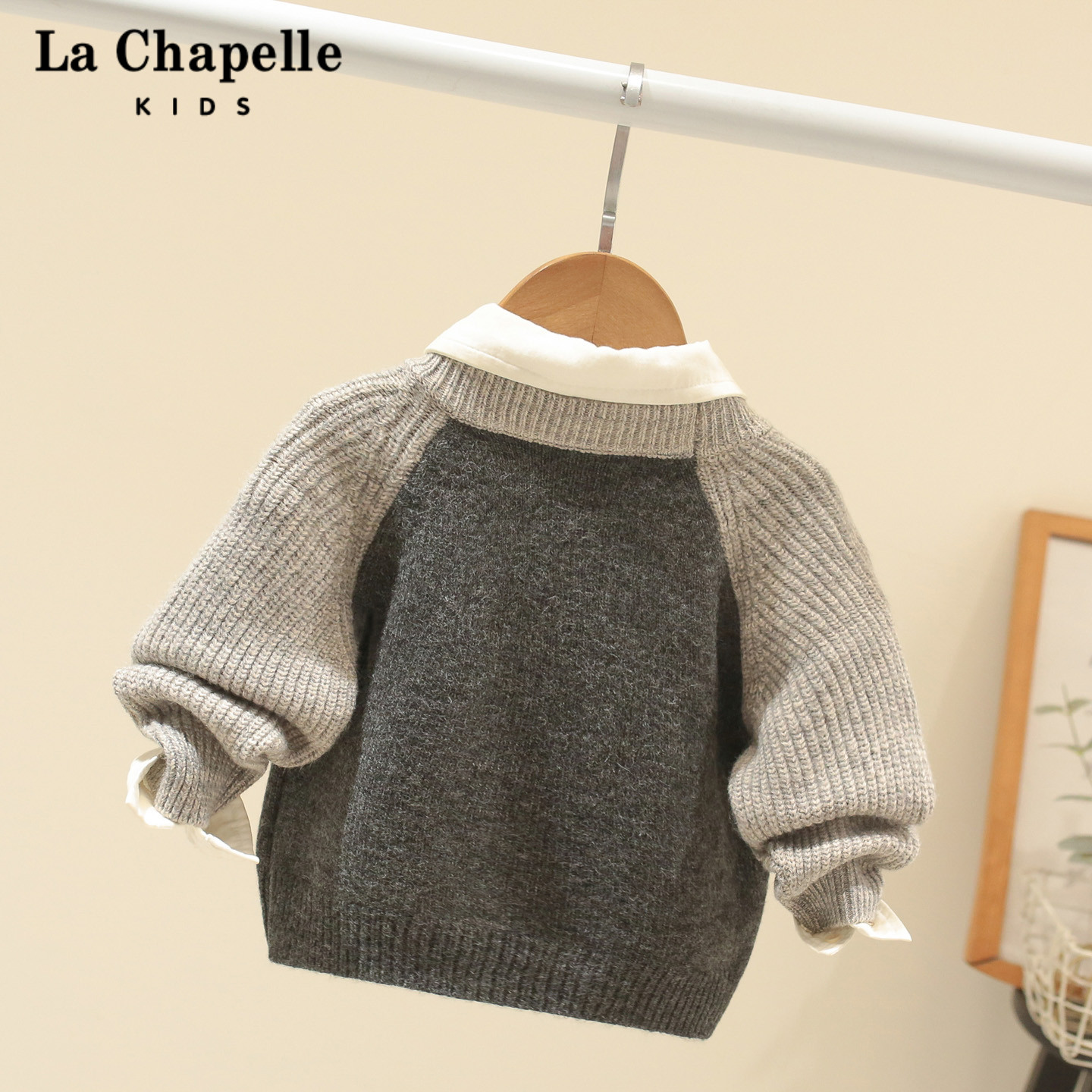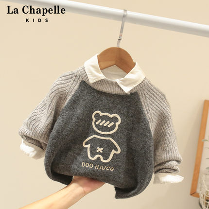 拉夏贝尔男童毛衣秋冬装2025新款宝宝洋气加厚针织衫儿童套头线衣