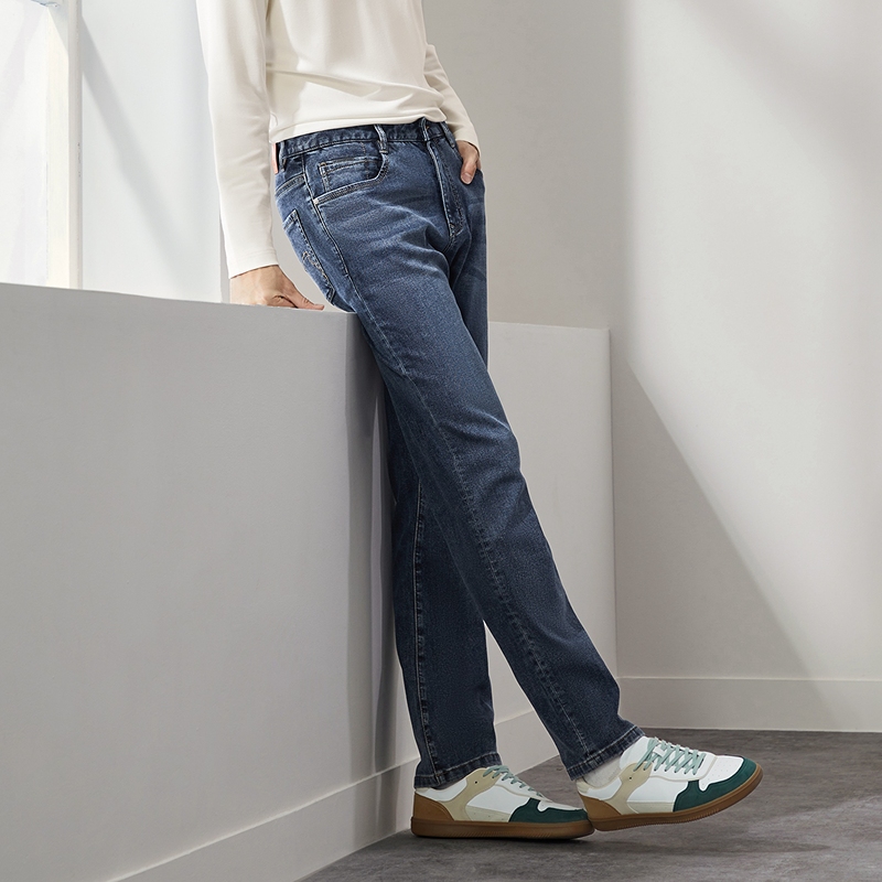 【远红外蓄热】柒牌水洗牛仔裤男秋冬新款休闲百搭磨毛舒适直筒裤