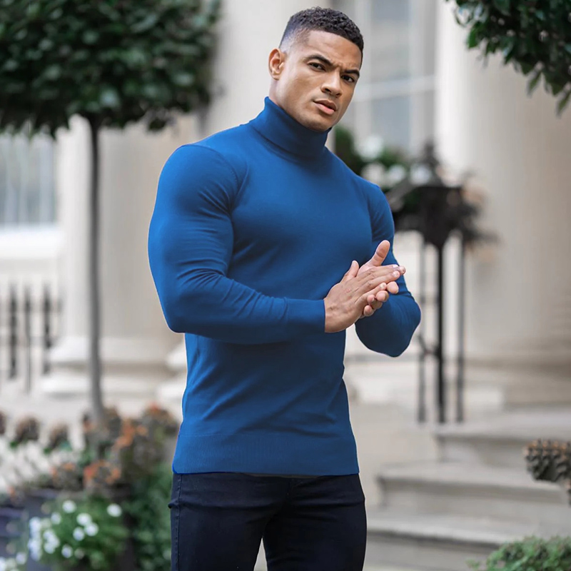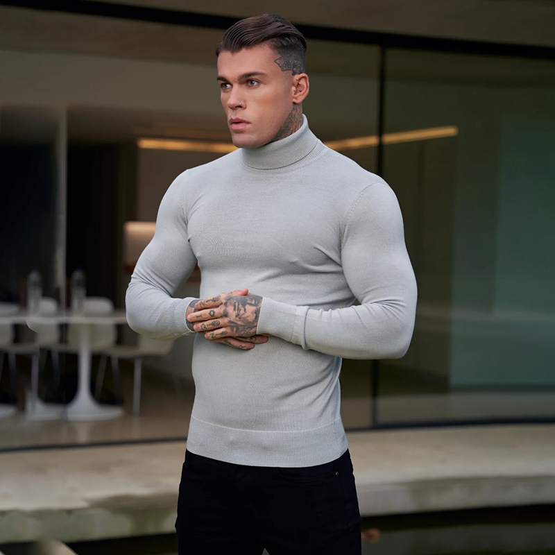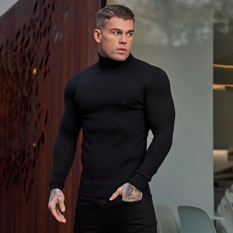 秋冬长袖针织衫打底衫高领健身套头修身紧身衣纯色休闲肌肉男毛衣