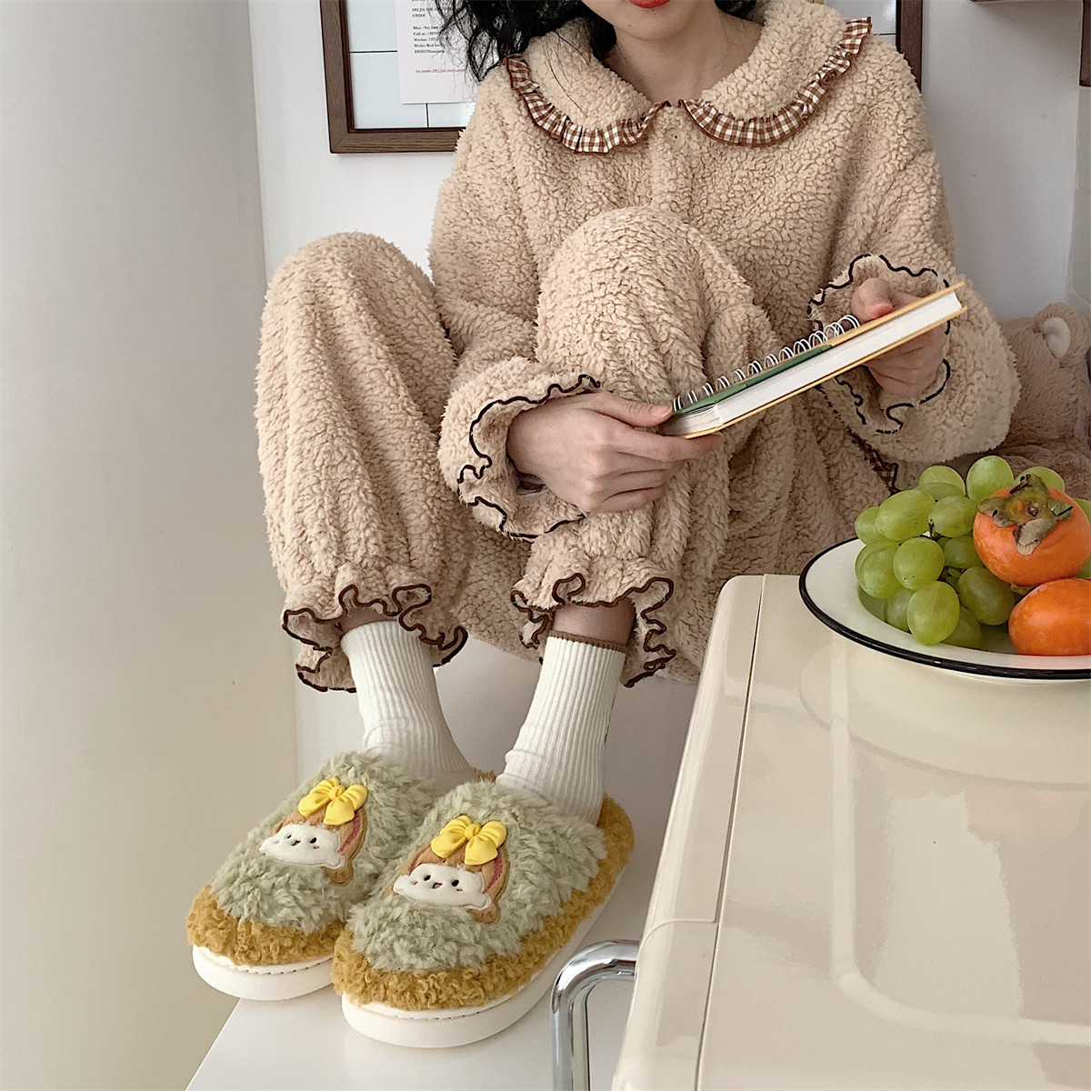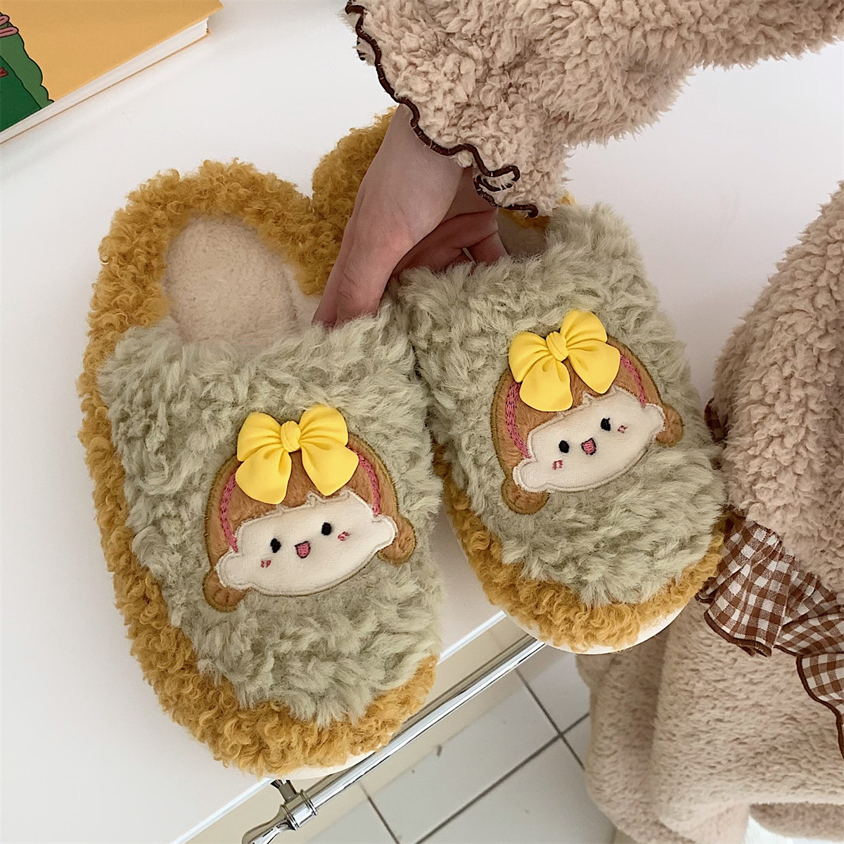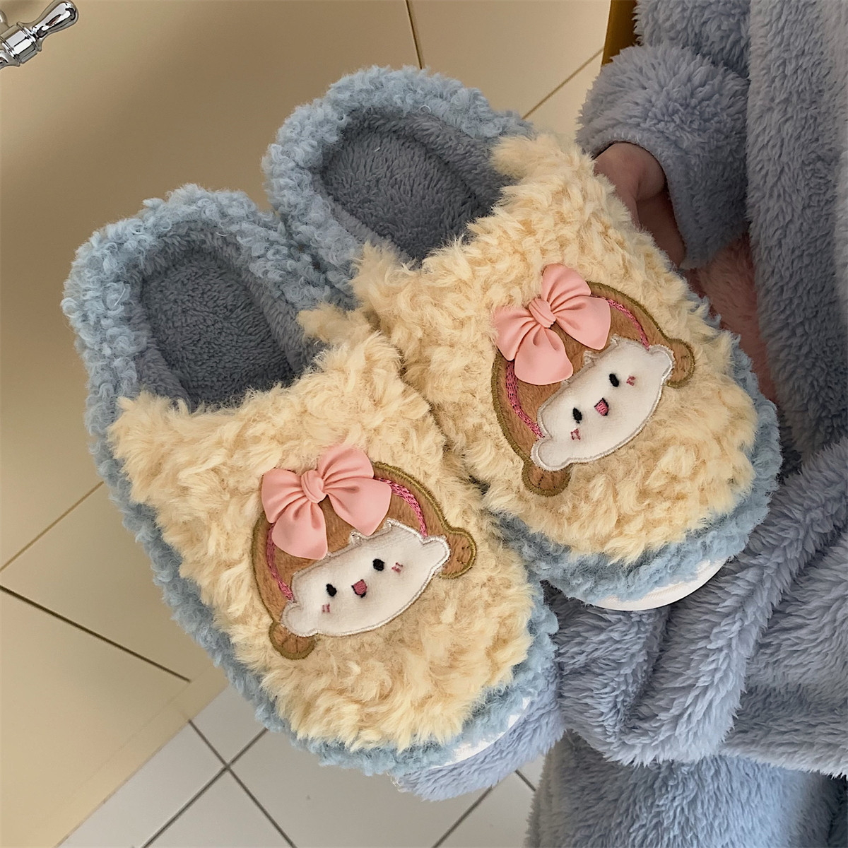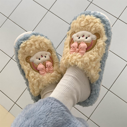 细细条 可爱少女心毛绒绒棉拖鞋女冬防滑厚底居家半包跟毛毛鞋ins