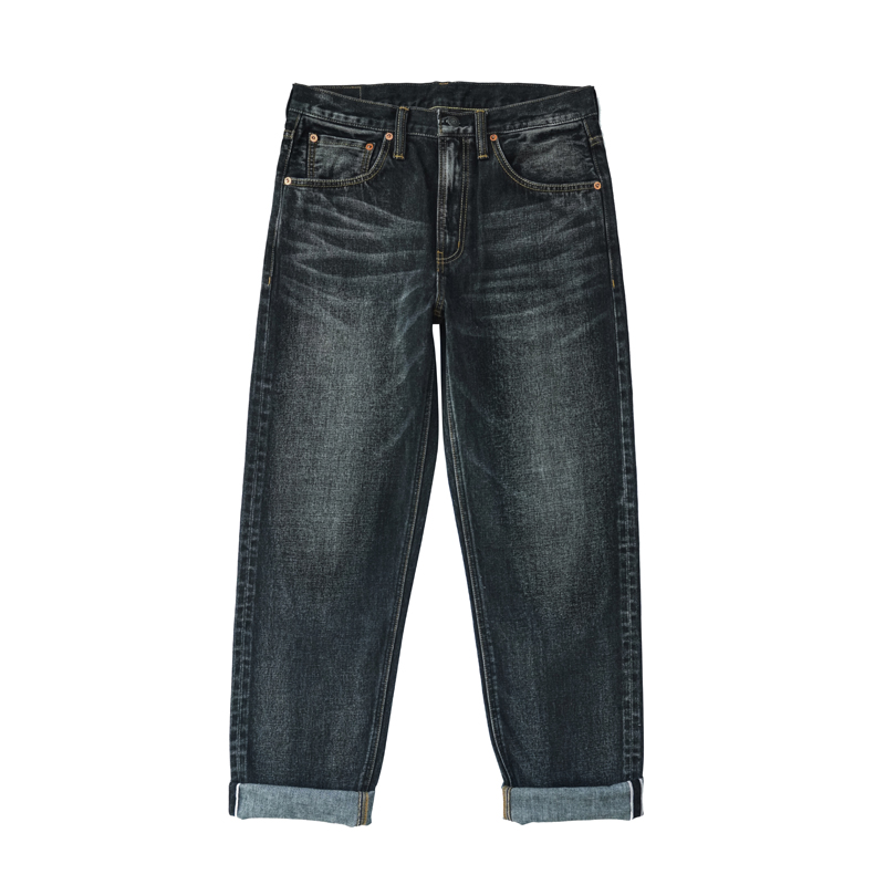 沾酱 赤耳黑牛457SX03直筒水洗牛仔裤男 新疆棉做旧复古咔叽 洗水