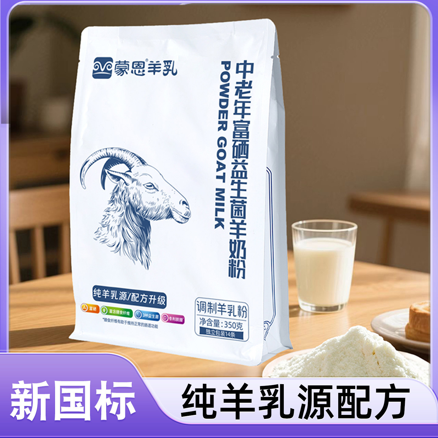 蒙恩中老年富硒益生菌羊奶粉羊乳粉奶粉成人老年人内蒙古袋装营养