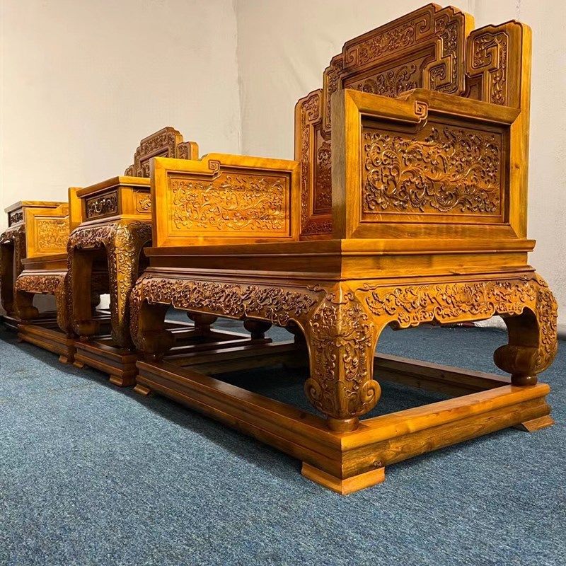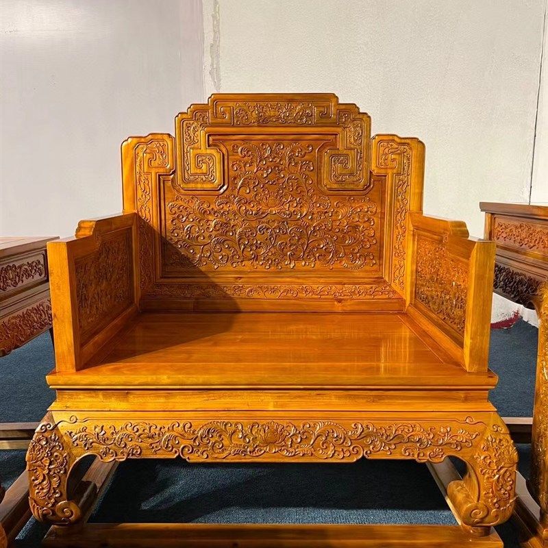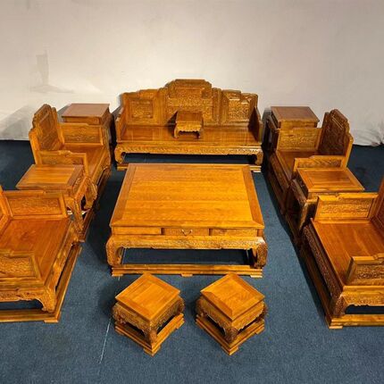 金丝楠木国宾款西番莲沙发组合椅凳仿古客厅古典红木X实木家具套