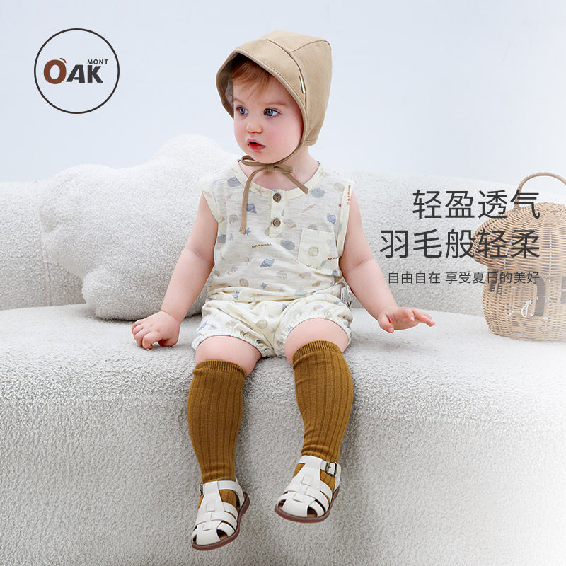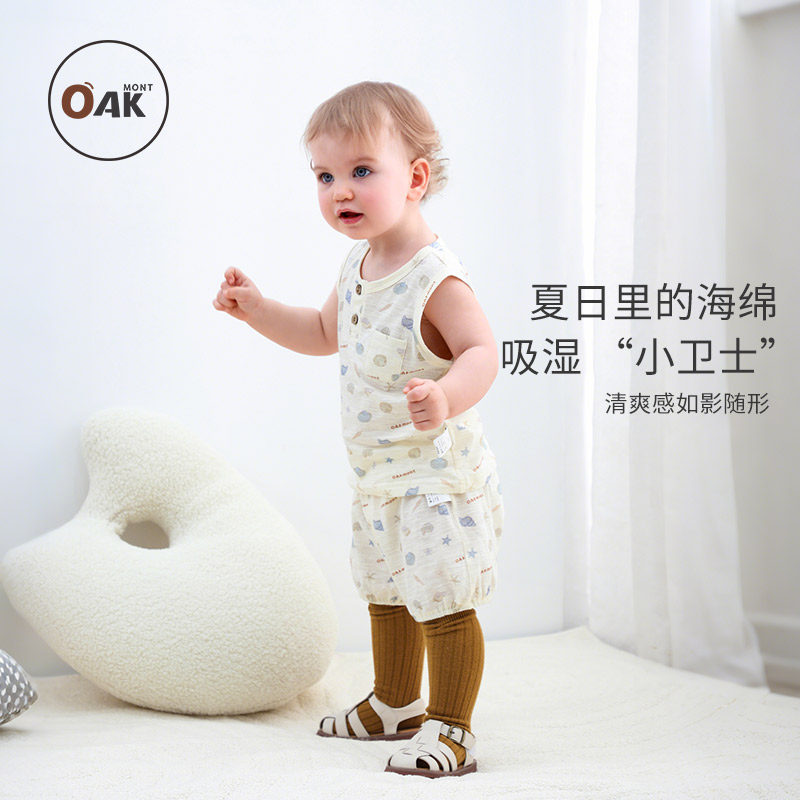Oak mont宝宝背心套装夏季a类无袖t恤短裤两件套竹节棉透气夏装