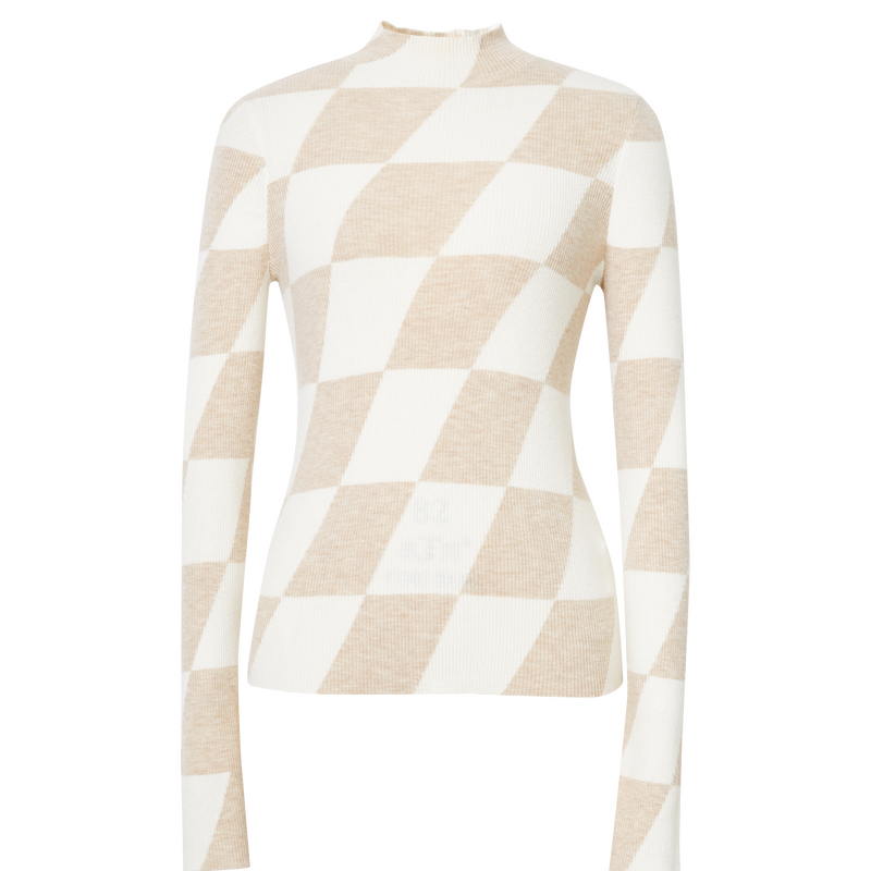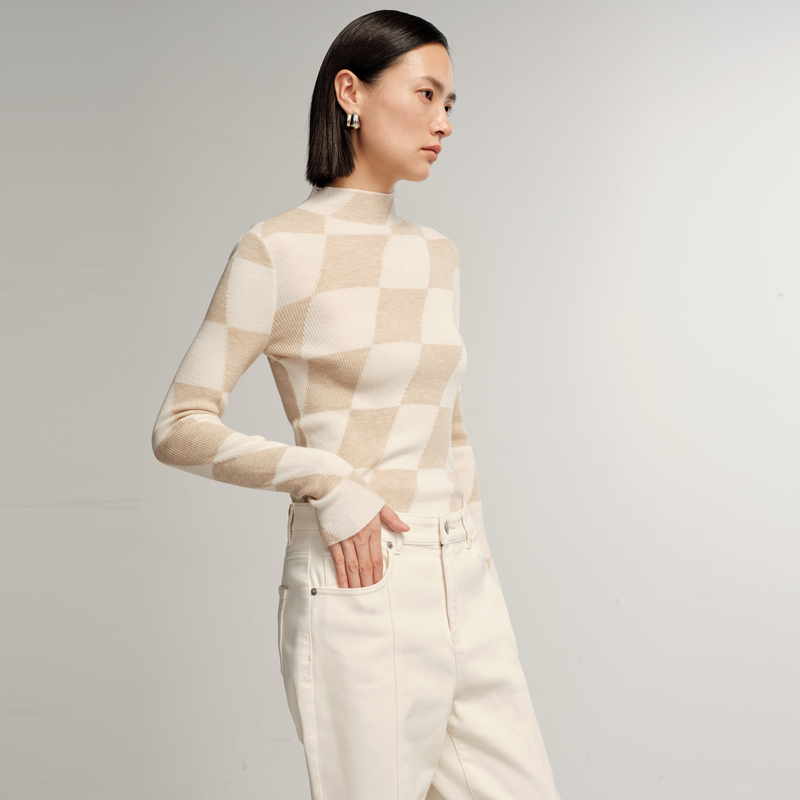 艾诺丝雅诗冬季新羊毛衫撞色格纹高领毛针织衫女21028021