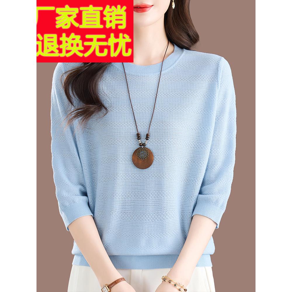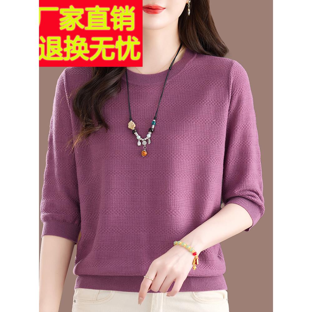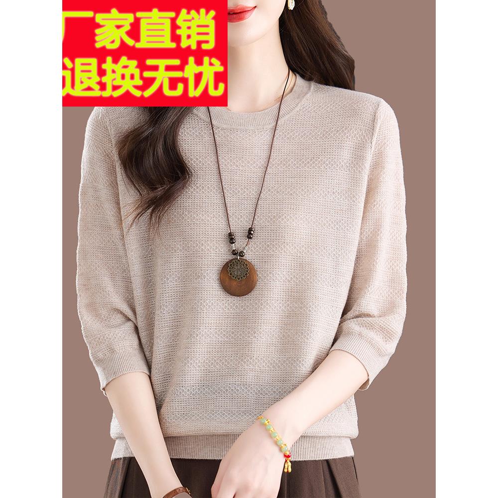 妈妈装洋气针织衫上衣T恤女2025春秋新款宽松桑蚕丝七分袖打底衫