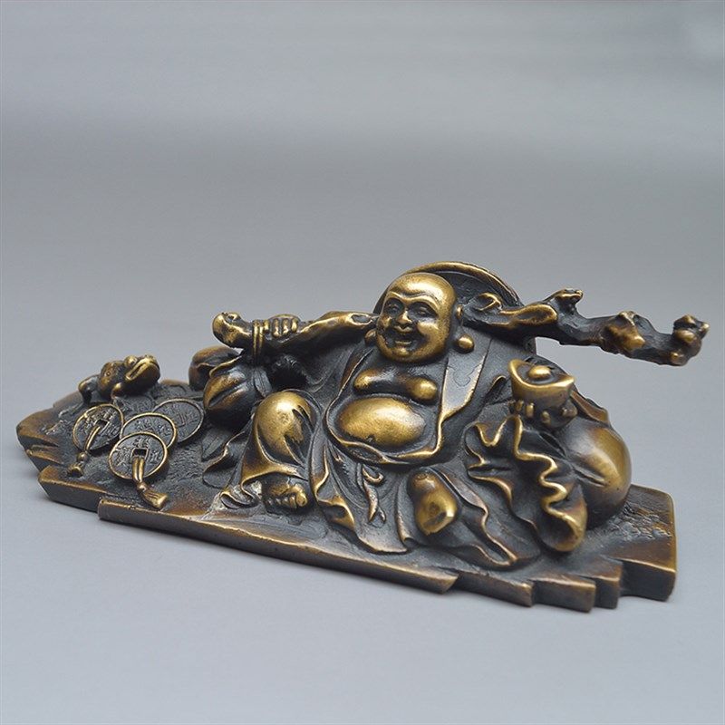 纯铜招财弥勒佛车载摆件大肚笑佛办公室书桌旺事业桌面装饰工艺品