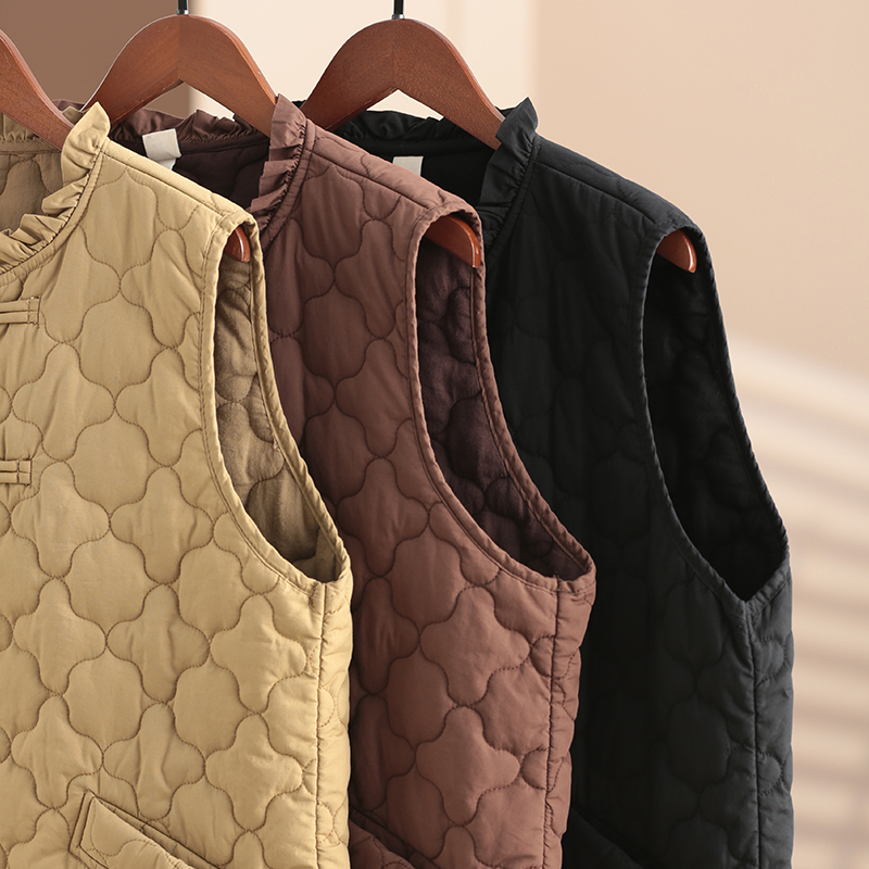 孔雀飞飞秋冬韩版宽松大码复古盘扣洋气加厚休闲马甲女款2024新款