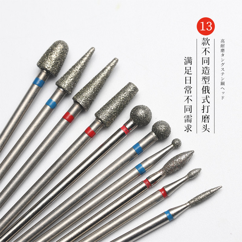 打磨头美甲前置处理俄式打磨头卸甲钨钢打磨头去死皮工具磨头套装