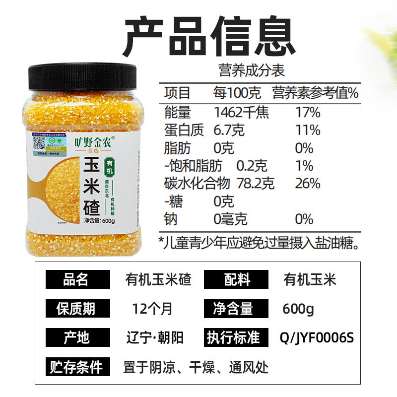 旷野金农有机玉米碴2025秋新玉米碴子小碴子粥料粗粮杂粮600g*1罐