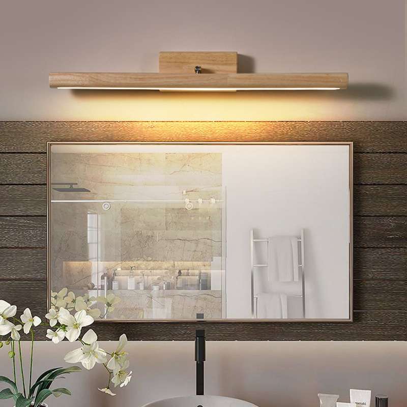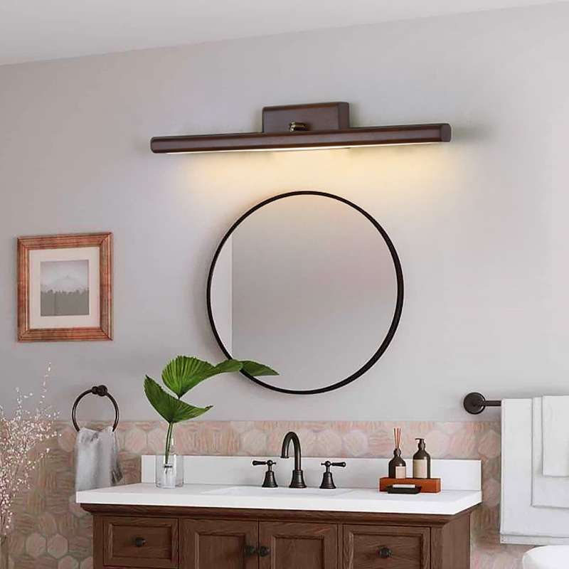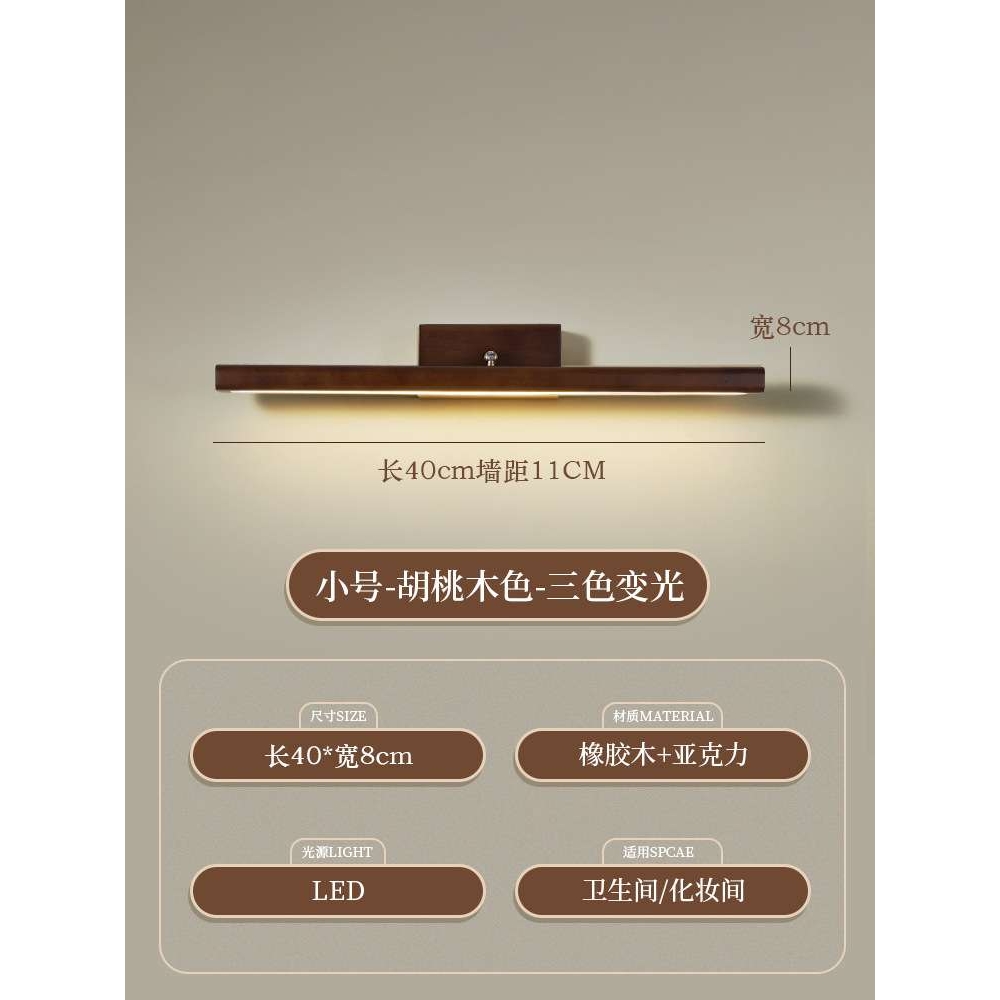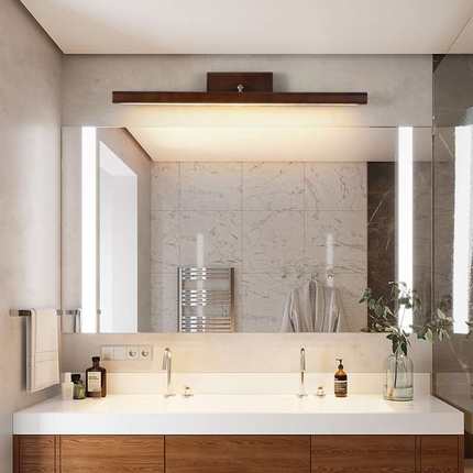 美式镜前灯卫生间浴室镜柜梳妆台化妆灯胡桃木色复古日式长条壁灯