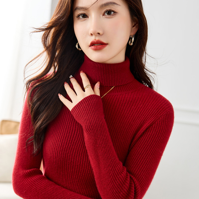 超显瘦针织羊毛高领毛衣