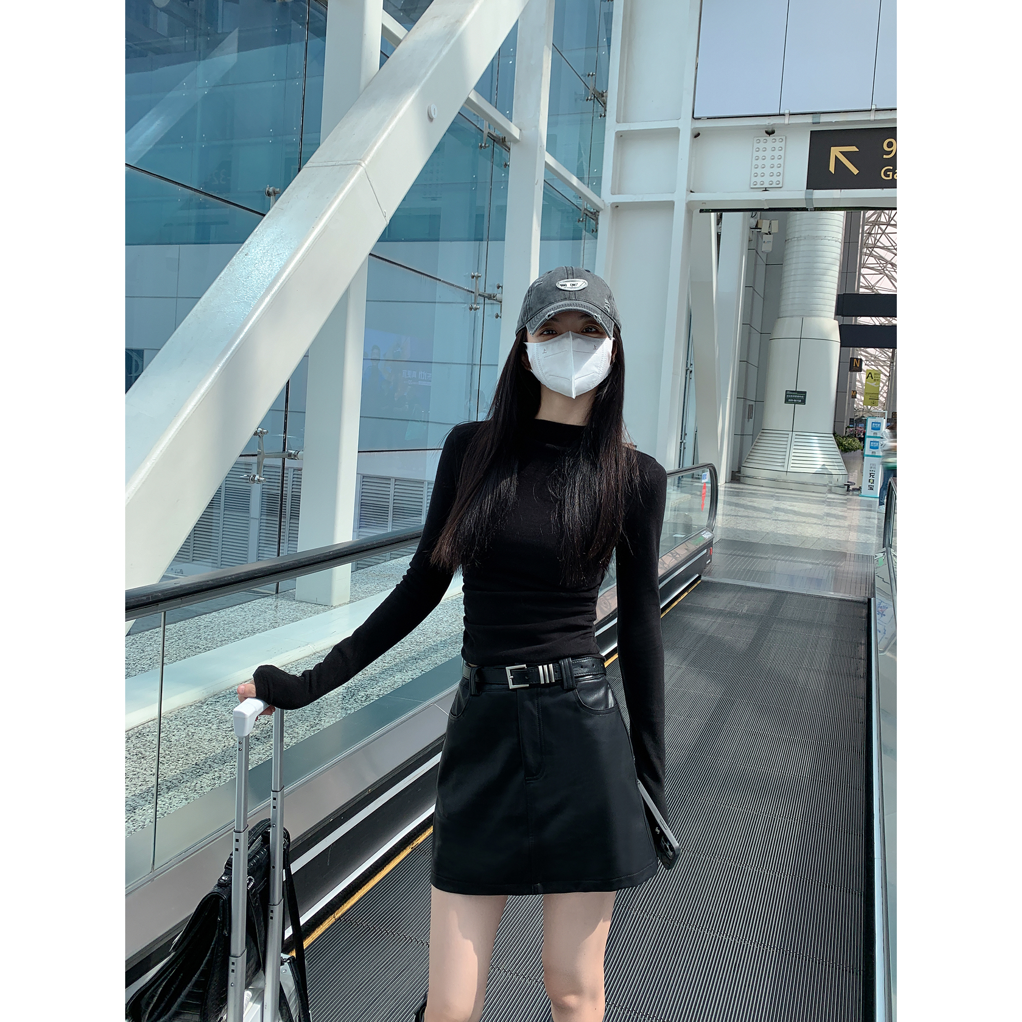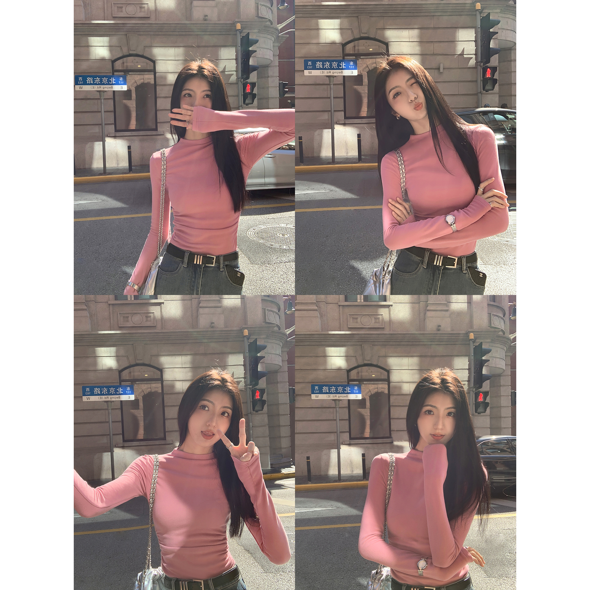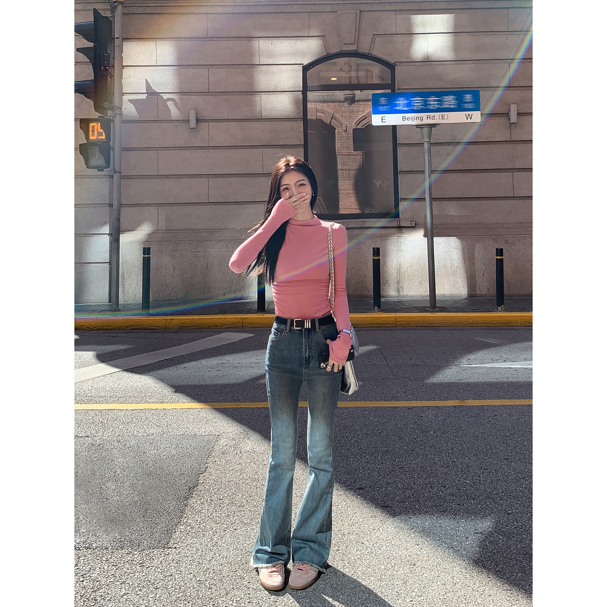 MULVAN 半高领针织衫女秋季设计感修身显瘦磨毛内搭打底上衣