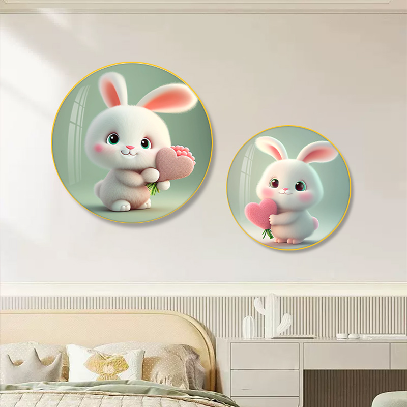 现代简约女孩卧室装饰画男孩房间床头挂画儿童房背景墙壁画圆形画