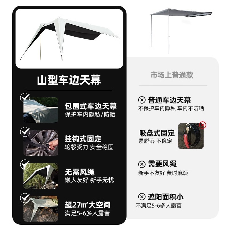 探险者山型车边天幕帐篷侧边遮阳棚黑胶防雨越野suv汽车户外自驾