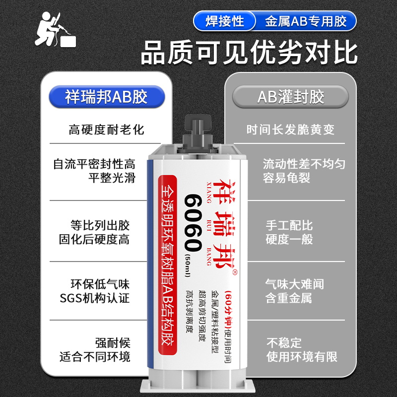 全透明ab胶粘金属陶瓷环氧树脂胶塑料木材ab强力胶大理石玻璃不锈钢铁焊接胶防水耐温铸工胶6005结构专用胶水
