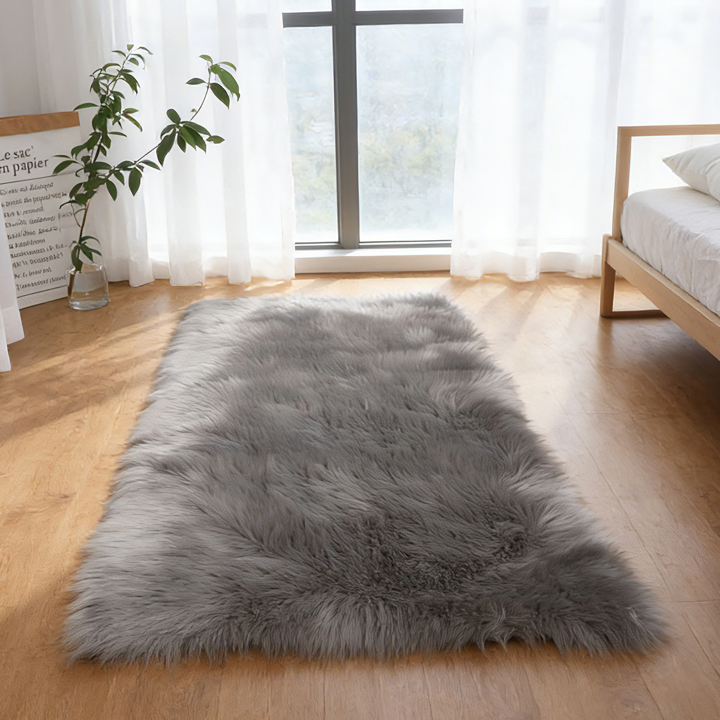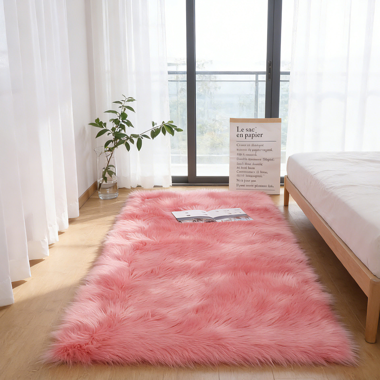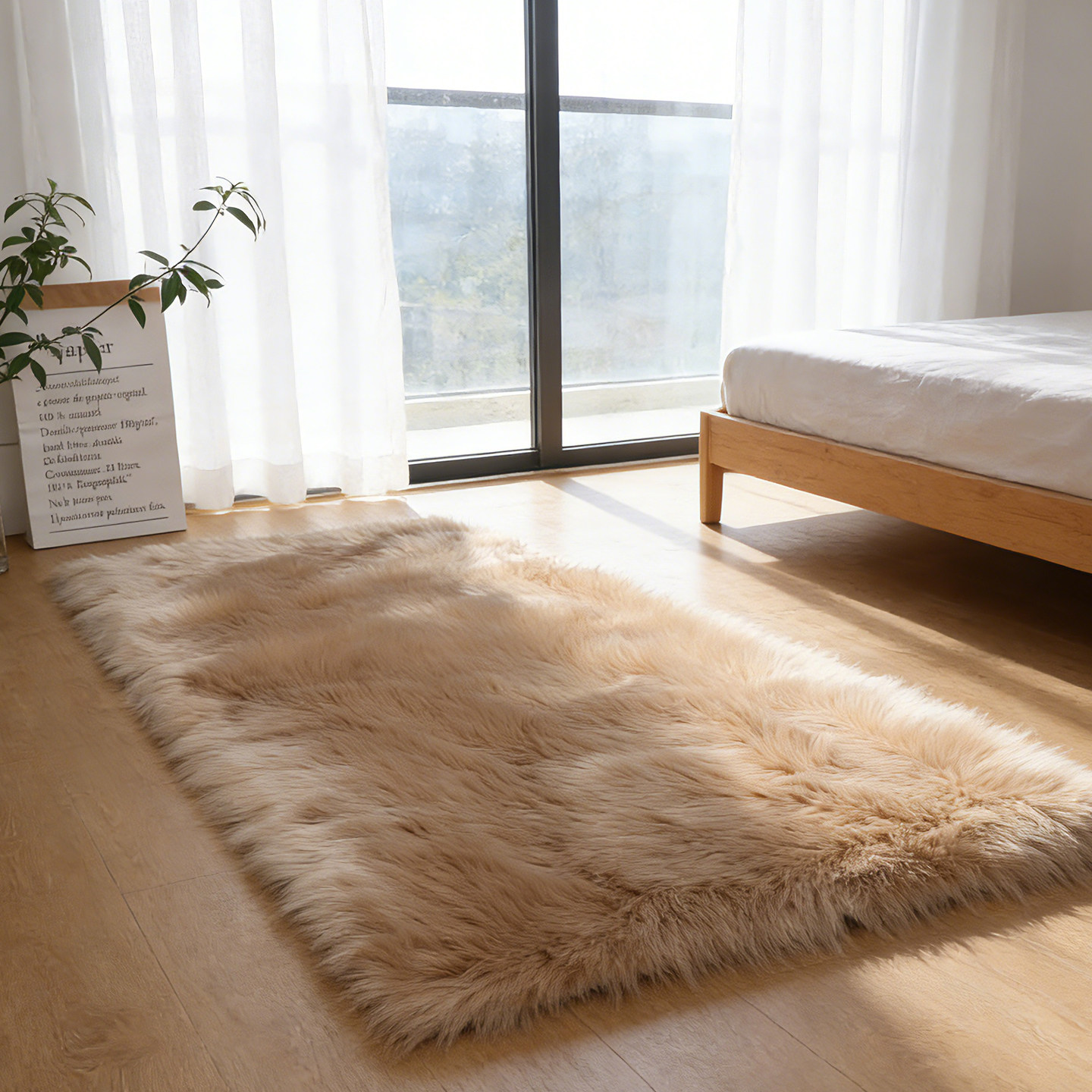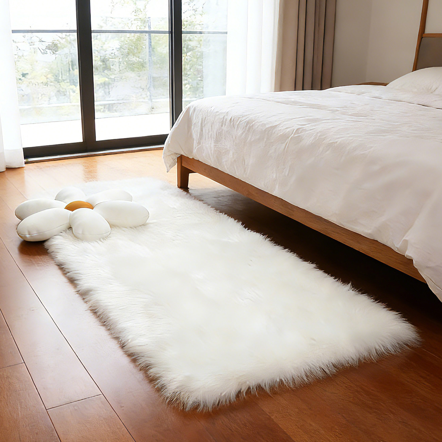 澳美简约风卧室长毛地毯客厅大尺寸毛绒地毯白色飘窗毛毛垫可定制