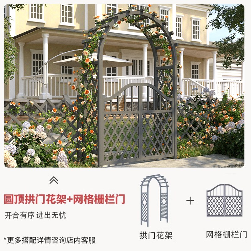 室外拱门爬藤花架防腐木庭院装饰门花园栅栏围栏门网格户外葡萄架
