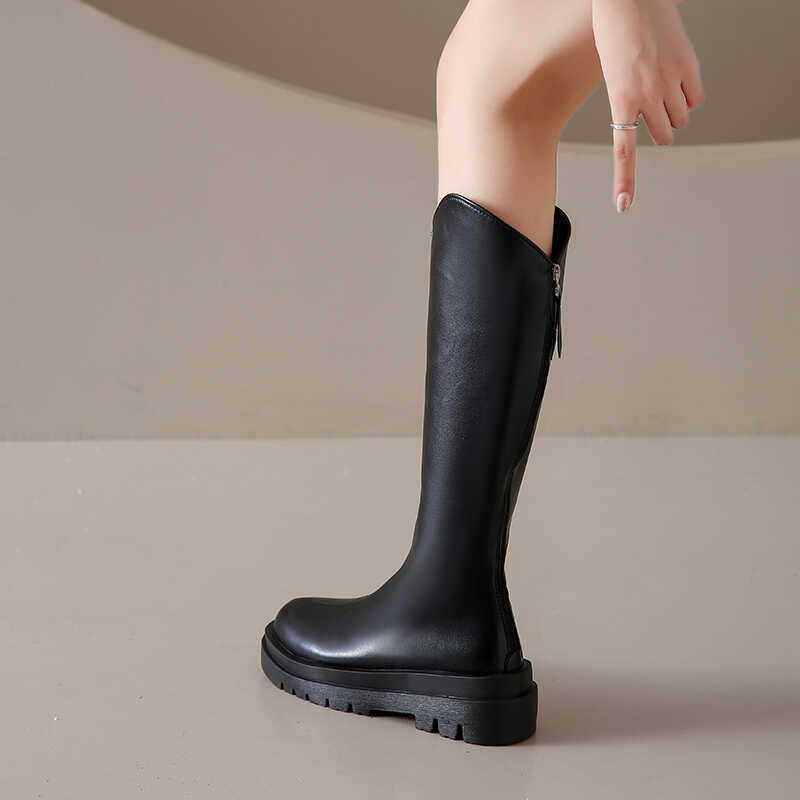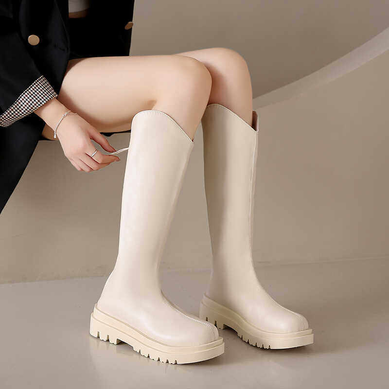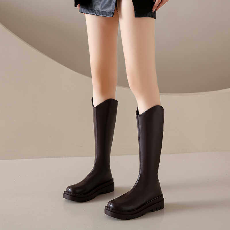 厚底长筒靴女2025新款春秋单靴骑士靴小个子棕色长靴高筒V口靴子