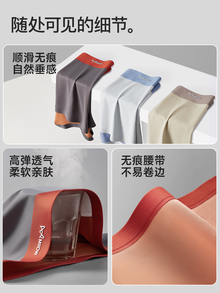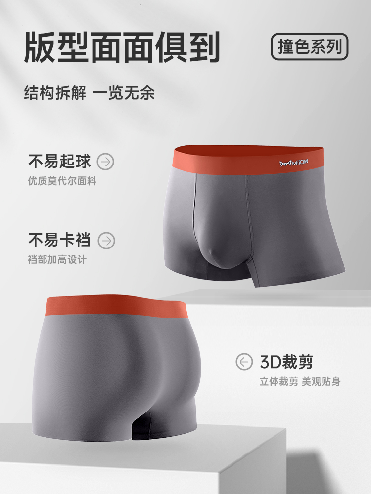 猫人男士内裤男生冰丝莫代尔无痕透气夏季薄款四角平角短裤头男款