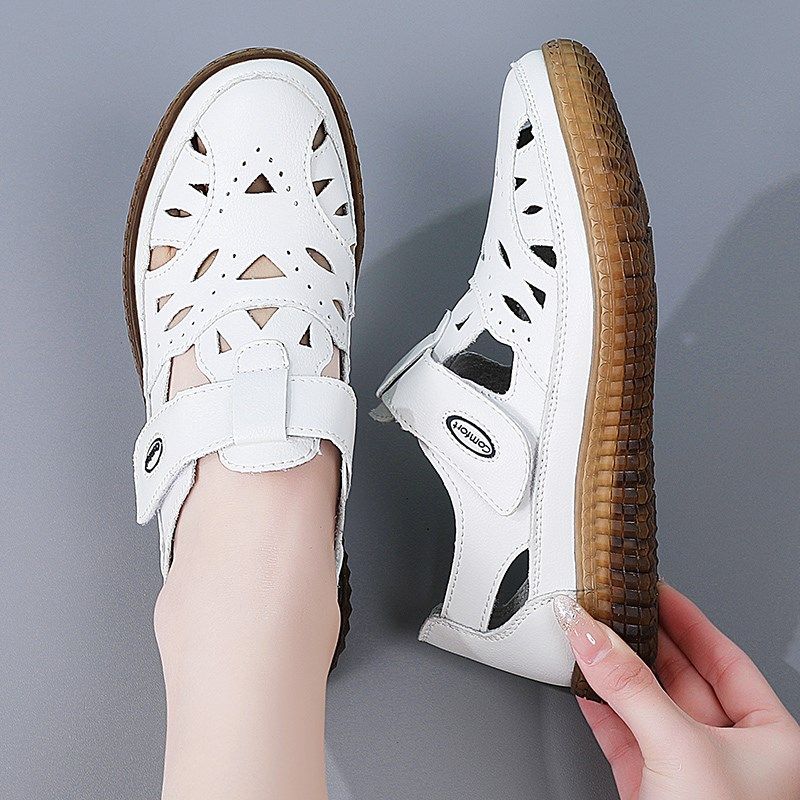 闰月中老年真皮包头凉鞋女夏季软底防滑透气妈妈洞洞鞋大码41一43