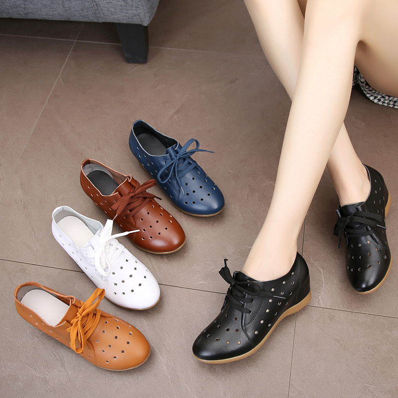 真皮小白鞋2025新款夏镂空透气平底单鞋百搭休闲坡跟内增高女鞋子