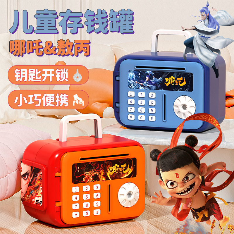 儿童存钱储蓄罐库洛米哪吒卡皮巴拉钥匙密码保险柜男女孩生日礼物