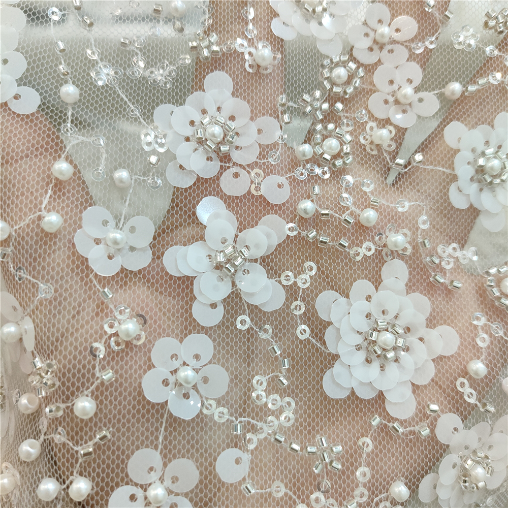 清仓特价白色重工钉珠亮片婚纱礼服装裙子旗袍背景装饰面布料DIY