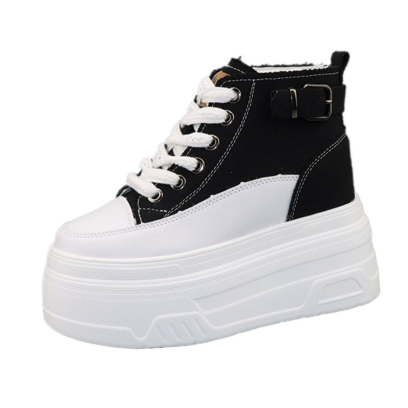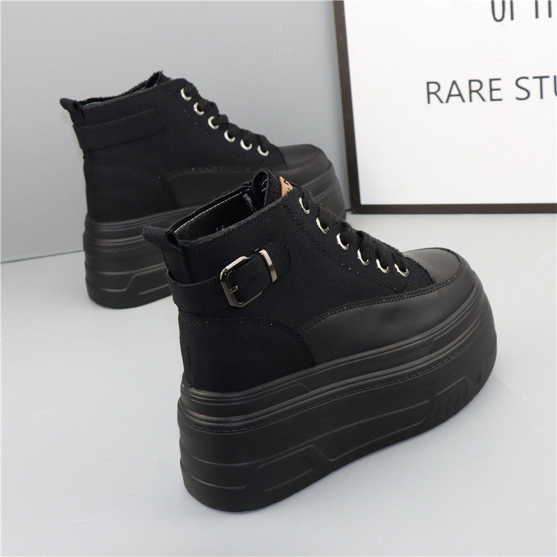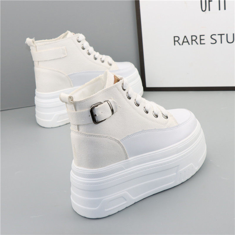 13CM隐形内增高帆布鞋女秋冬新款11厘米厚底松糕鞋百搭休闲小白鞋