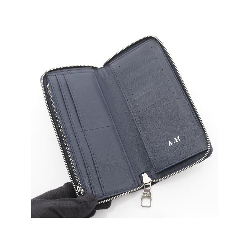 中古LV路易威登男B级9新Zippy Wallet Vertical牛皮长钱包蓝色