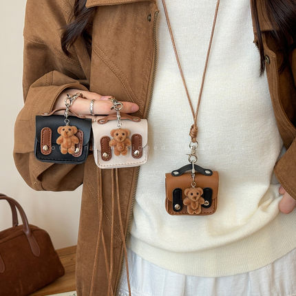 可爱毛绒小熊耳机包项链女秋冬高级感长款挂脖毛衣链拆卸挂件配饰