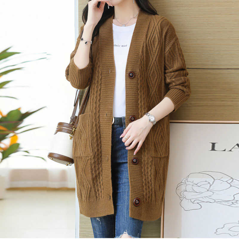 2024秋季新款中长款毛衣开衫女装宽松大码羊毛衫外搭加厚针织外套