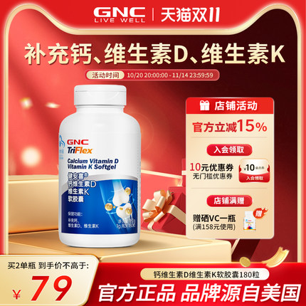 GNC健安喜 维生素D3维生素K2补钙软胶囊成人青少年中老年官方