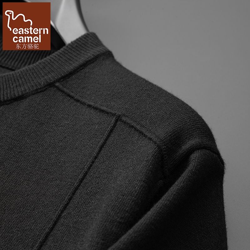 加肥加大圆领毛衣男内搭短袖毛衫男大码秋冬季纯色外穿半袖针织衫