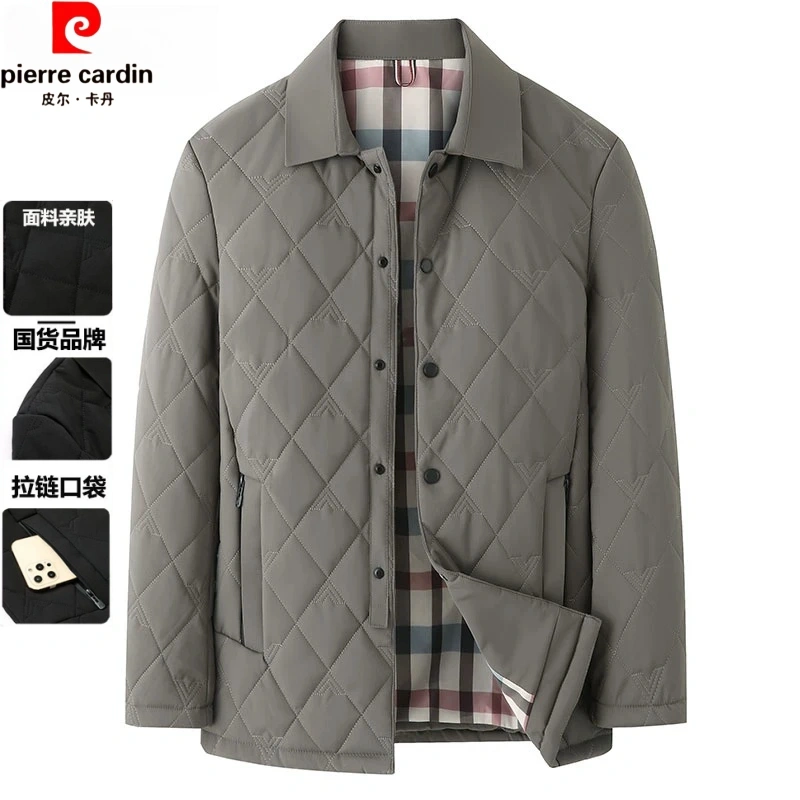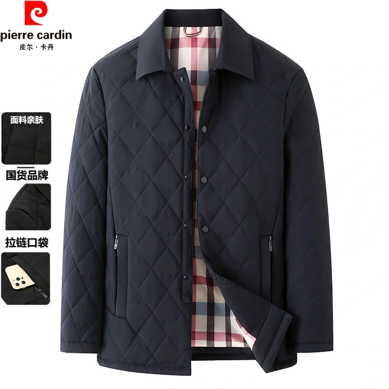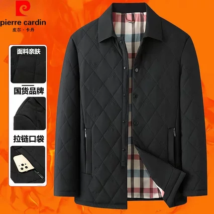 皮尔卡丹冬季加厚翻领男士棉衣新款宽松休闲中老年保暖棉服外套