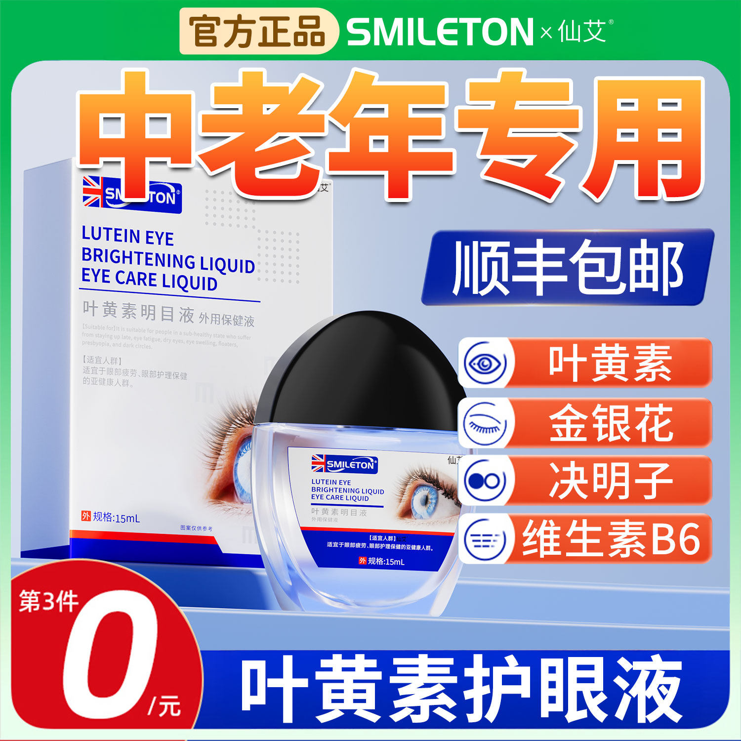 叶黄素滴眼液中老年成人专用缓解眼睛干涩下降模糊正品官方旗舰lk