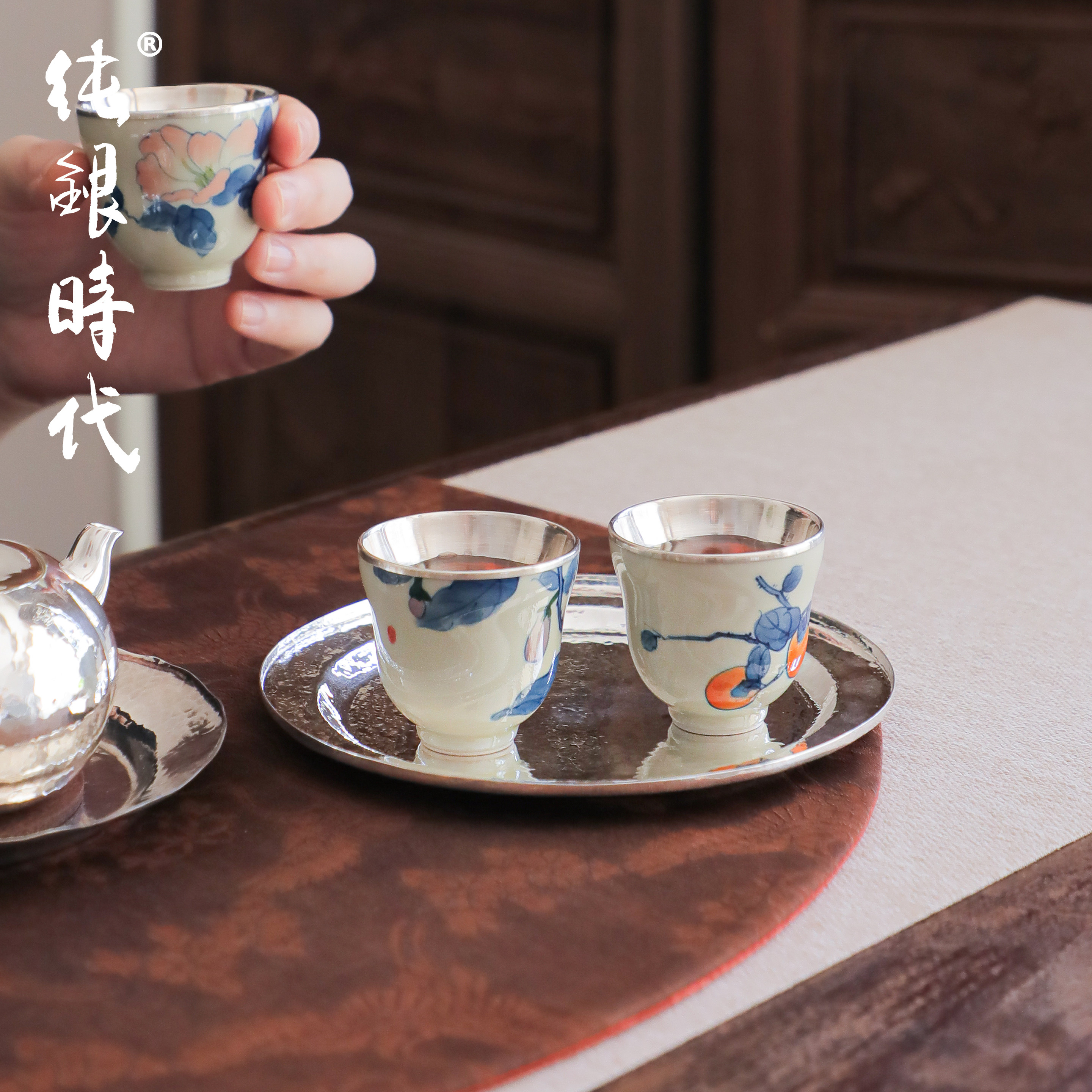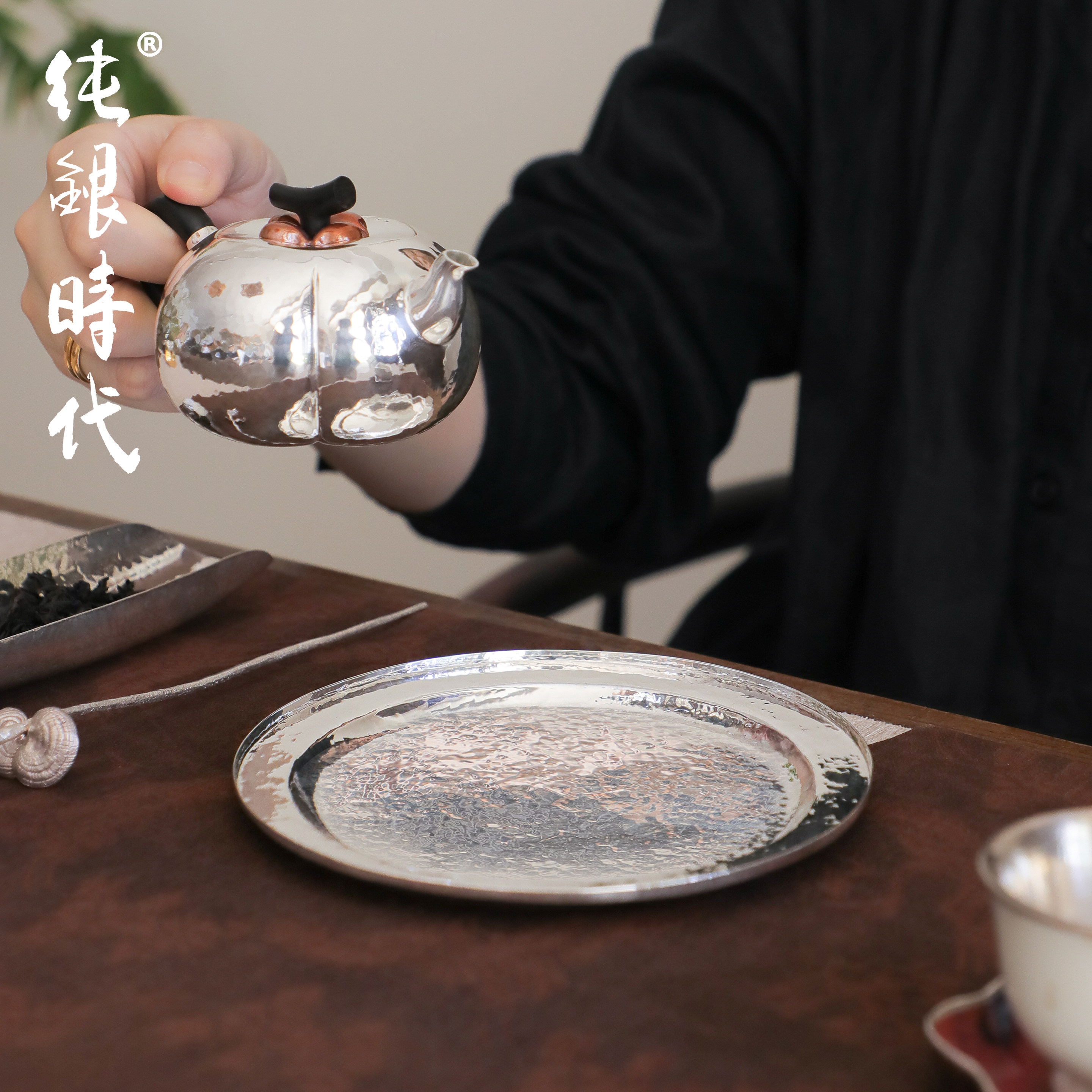 纯银时代手工纯银茶盘壶承壶托