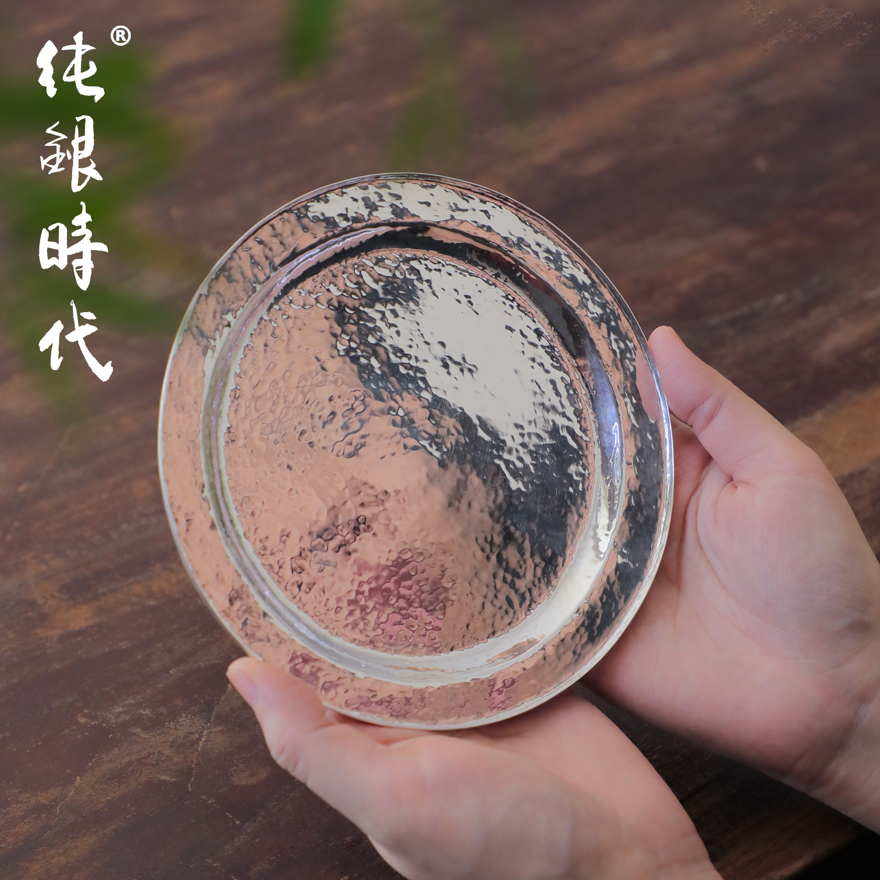 纯银时代 月光素银盘足银999手工壶承小干泡台茶托壶托公杯托简约
