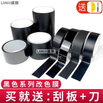 汽车改色膜碳纤维贴纸改色车膜黑色内饰车身亮条饰条黑化亮黑贴膜