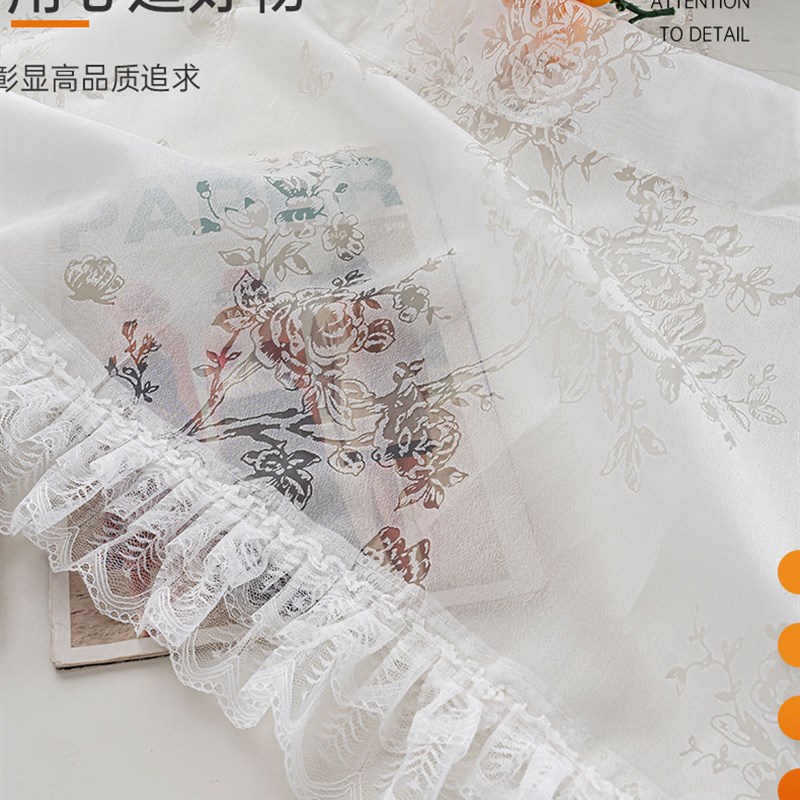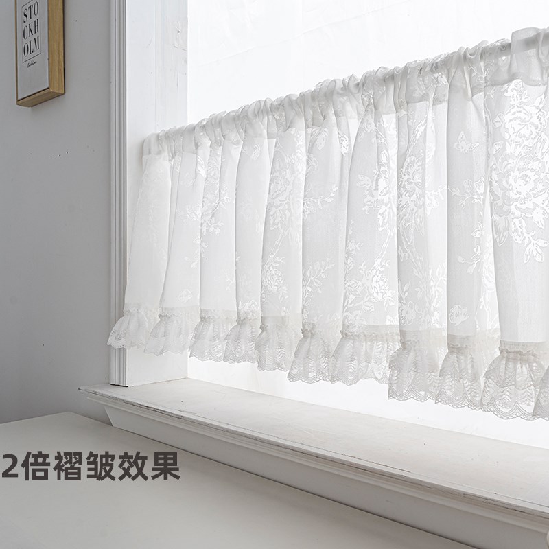 小窗帘遮挡半帘卧室卫生间门帘半截飘窗隔断蕾丝公主法式白纱短帘