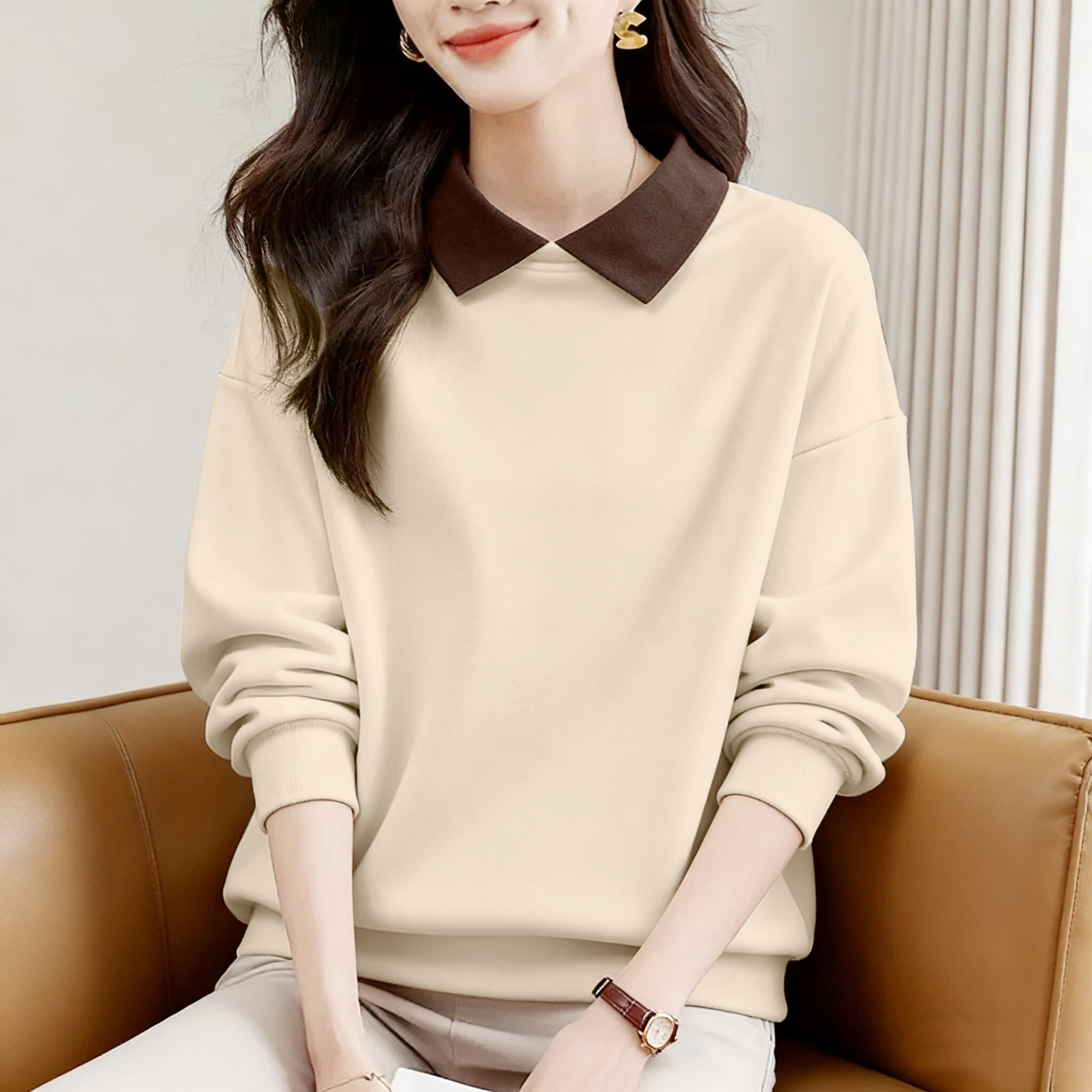 洋气翻领纯棉长袖卫衣女