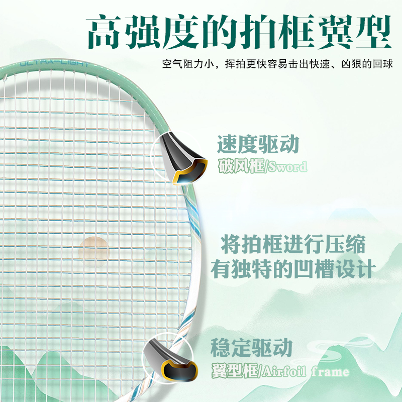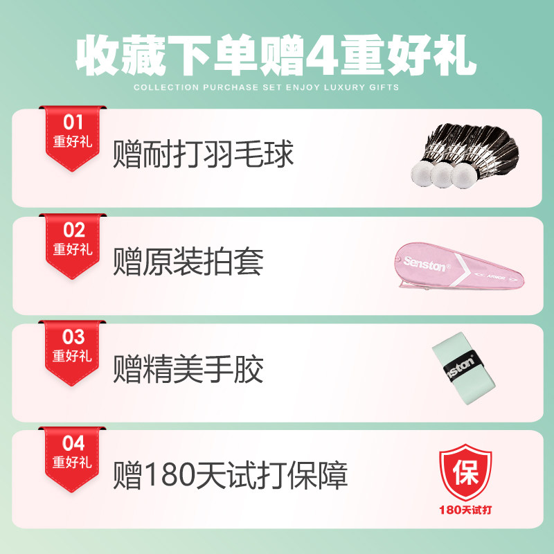 senston/揽青 羽毛球拍全碳素超轻成人学生单拍正品攻防均衡套装