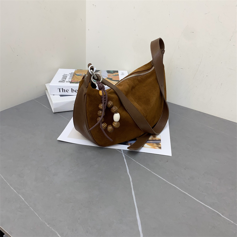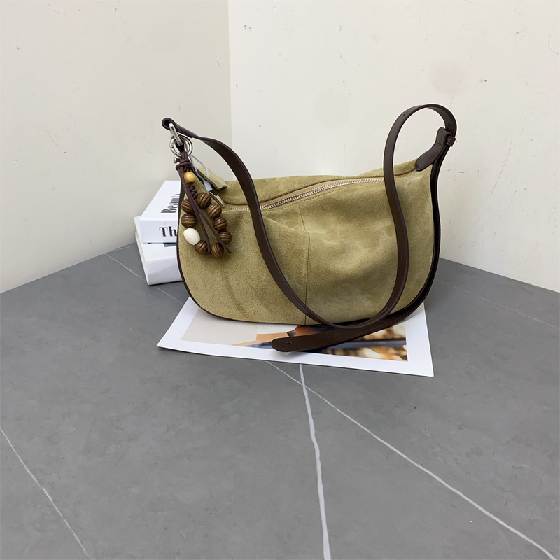 2025新款韩版时尚潮流磨砂皮饺子包休闲软皮单肩包撞色百搭斜跨包