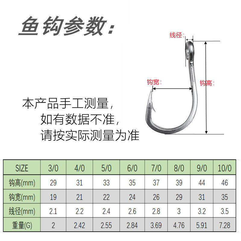 带夜光丝49股316不锈钢长条速沉铁板钩深海钓鲅鱼马鲛海狼鱼钩
