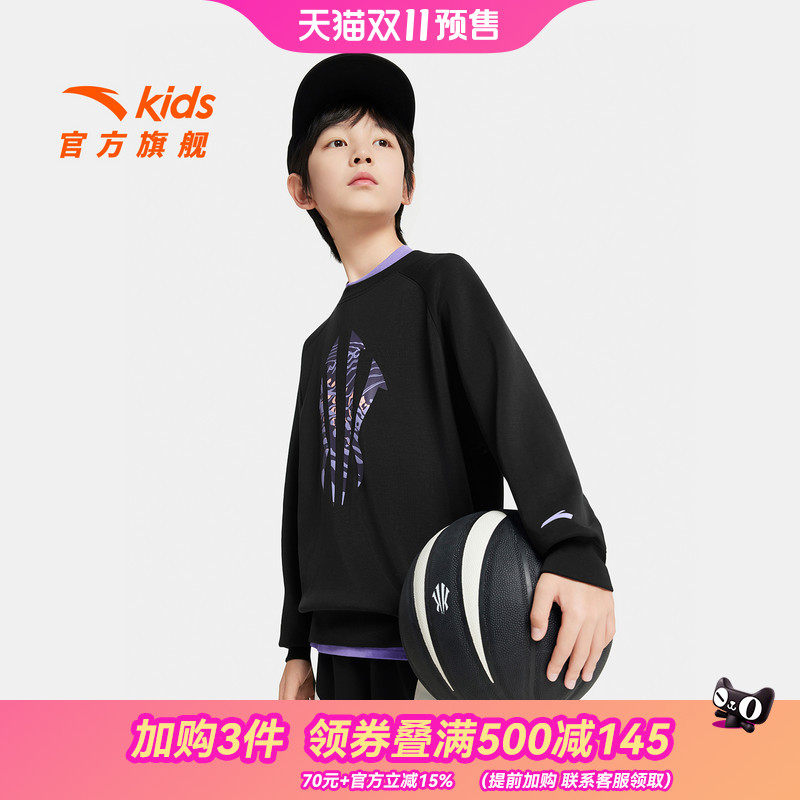 欧文系列安踏儿童卫衣男童套头衫2025秋新款中大童运动长袖卫衣