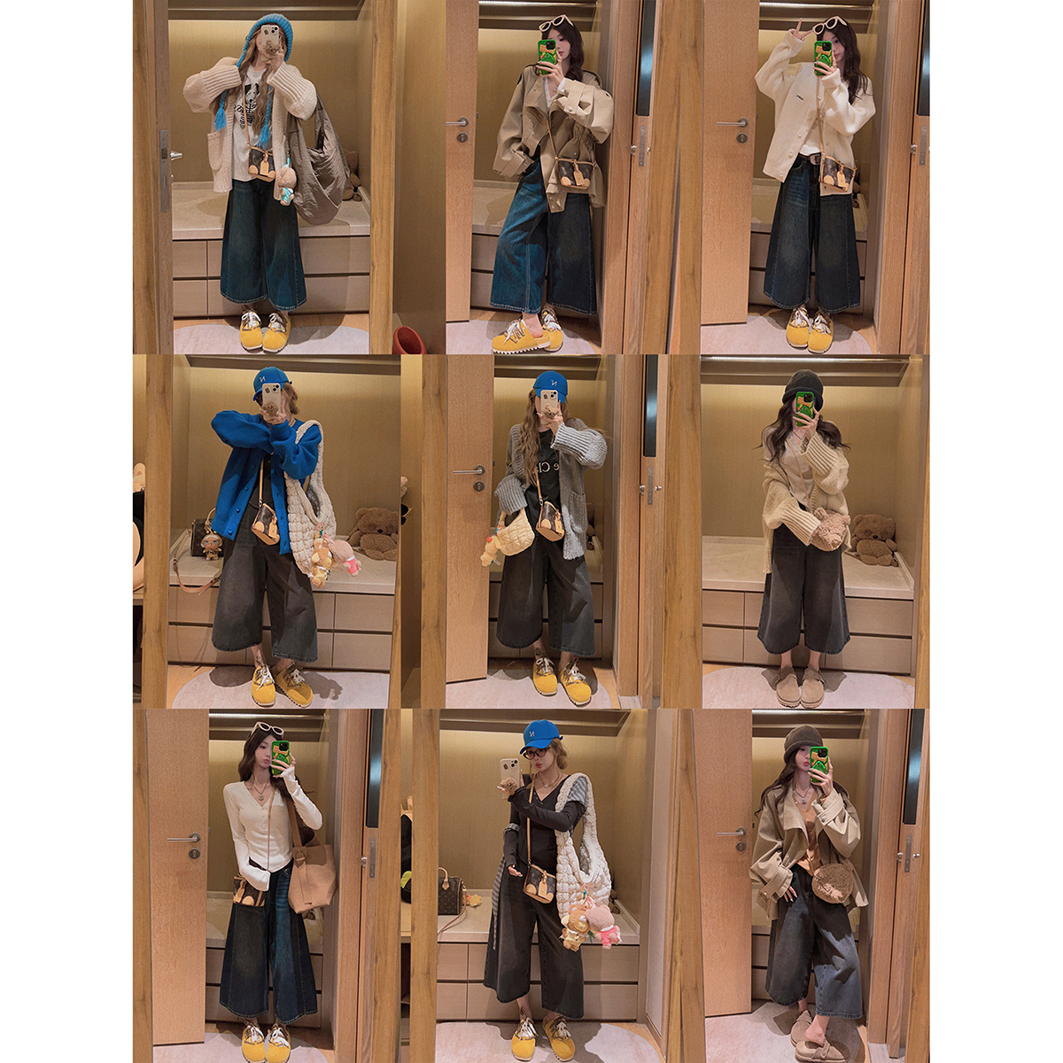 Yukiss 深蓝色复古高腰直筒阔腿七分牛仔裤女秋小个子显瘦休闲裤