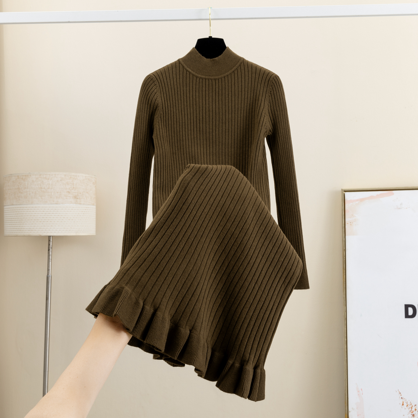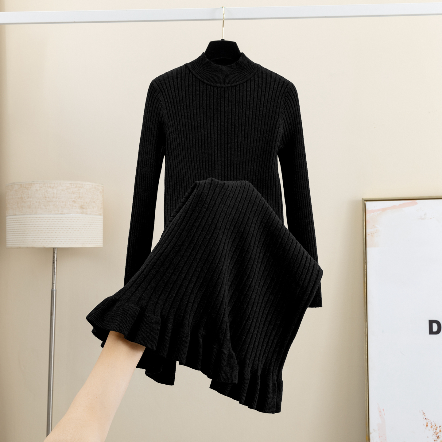 2025秋冬新款羊毛长袖针织连衣裙女半高领修身内搭打底毛衣长裙子