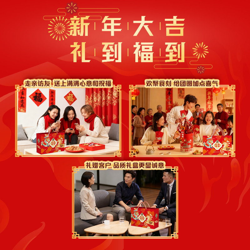 徐福记年货礼盒年货过节送礼团购春节糖果零食糕点1750g龙马送福