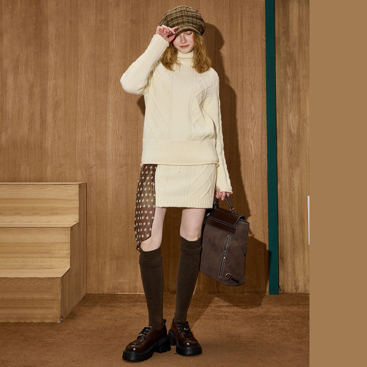 coolhut两件套气质简约百搭套头高领毛衣针织2026冬季女式套装