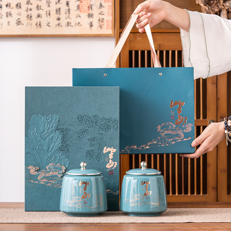 新款茶叶礼盒装空盒陶瓷罐包装盒